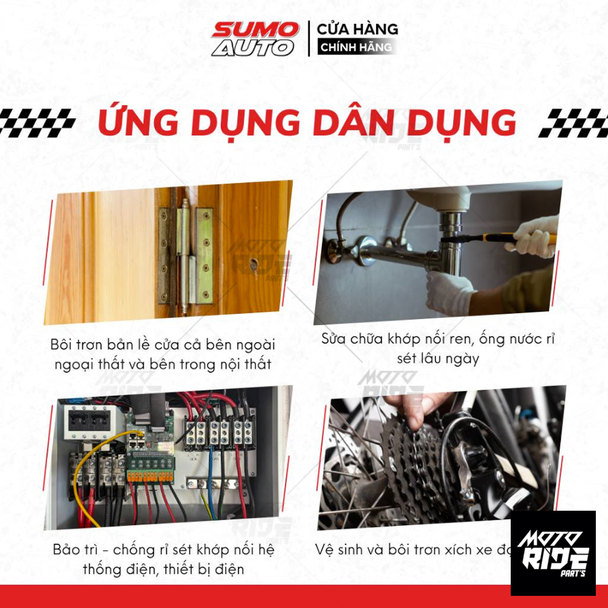 – Đẩy lùi hơi ẩm trong hệ thống điện, bảng mạch, động cơ điện, công tắc điện, phích cắm điện, bugi trong ô tô, xe máy, v.v.